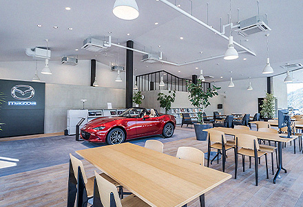 マツダの新世代店舗ではマツダブランドとクルマの魅力をお客様に感じていただくことをコンセプトとし、お客様に居心地の良いひと時を提供します。