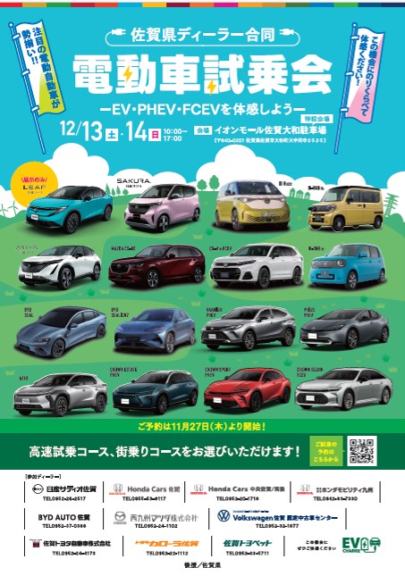 このたび、佐賀県内自動車ディーラーによる「佐賀県ディーラー合同 電動自動車試乗会」 が開催され、当社も出展いたします。