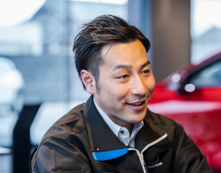 整備で現場を担当していた時は、1台の業務が完了すると営業スタッフにバトンタッチ、という感じでそこまで深くお客さんと接する機会がなかったのですが、いまは直接やりとりをすることが多くなったので、リアルに「ありがとう」、とか「よくなったね」との言葉をいただけて、素直に嬉しいですね。元はコミュニケーションを取るのが苦手な方でしたが、それが楽しさにも繋がっているのは、自分の中で以前と少し変わったなと思います。