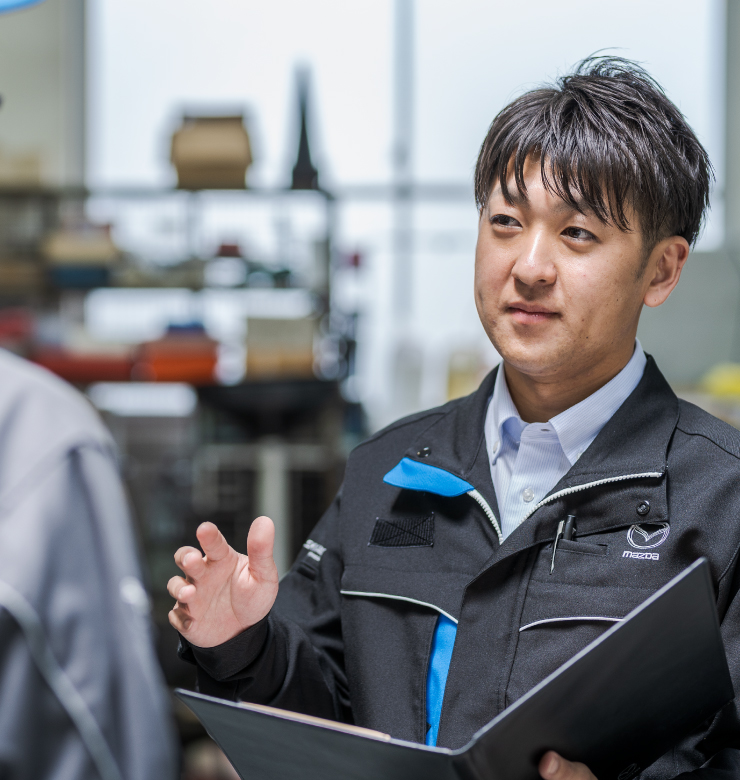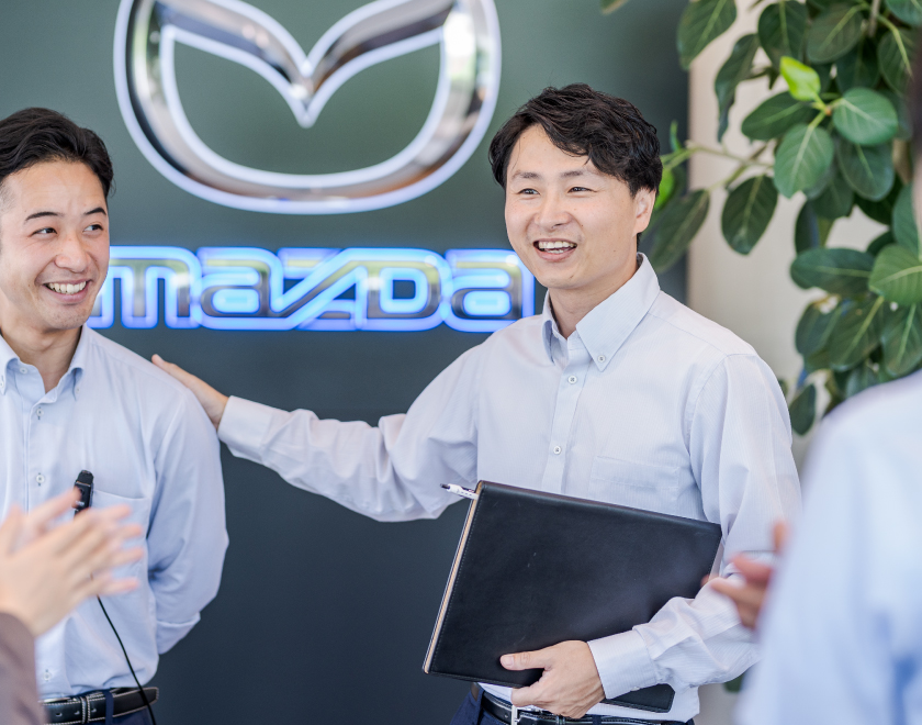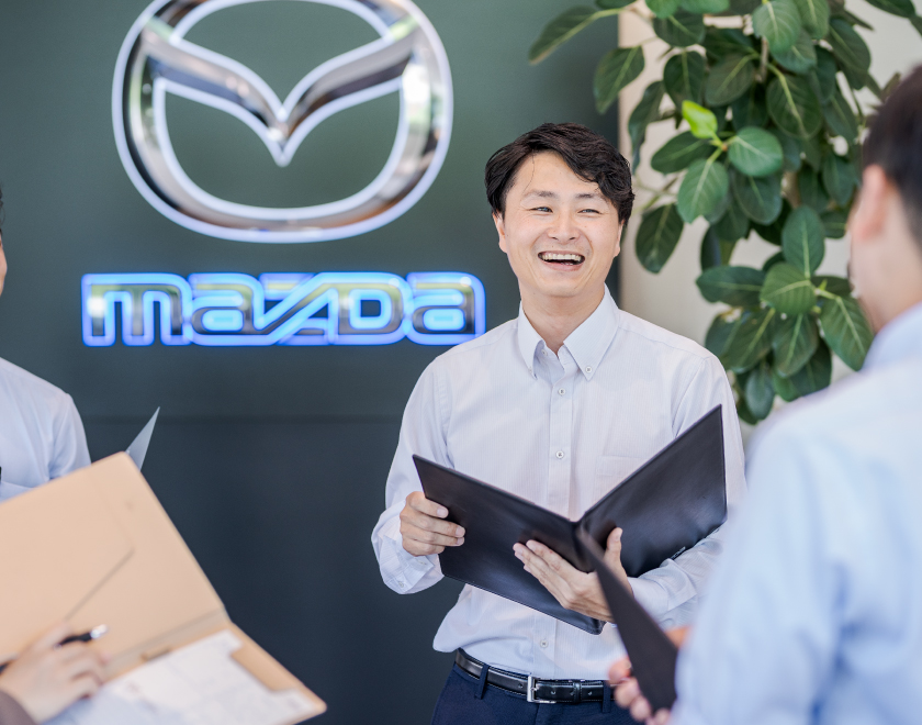 自分の営業に関しても、お客さまのお話をしっかり聞くことを心がけています。ただし質問ばかりしてもうまくいきませんので、最初に自分の趣味であるキャンプの話などをして場を和ませています。また以前は車種ごとに大きく説明を変えていましたが、現在のマツダはブランドの方向性がどの車種でも一致しているので、まずはコンセプトをしっかり説明した上で、家族の人数や車に乗る頻度など、お客さまのライフスタイルに合わせてご提案しています。