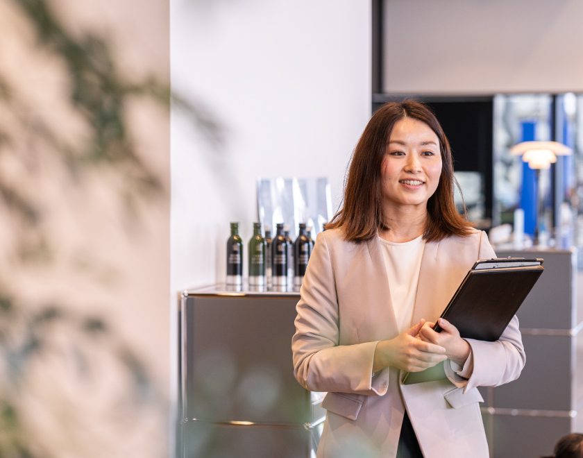 事務スタッフはお客さまの接客だけではなく、事務所内での入力確認作業も大切な仕事です。時間をうまく管理して両立させながら、自分の中で決めたその日の目標まで、きっちりと仕事を終わらせることができると嬉しいです。そしてご案内したお客さまから「ありがとう」と言われると、やっぱりこれまで苦労してきた分が報われるというか、やりがいを感じますね。