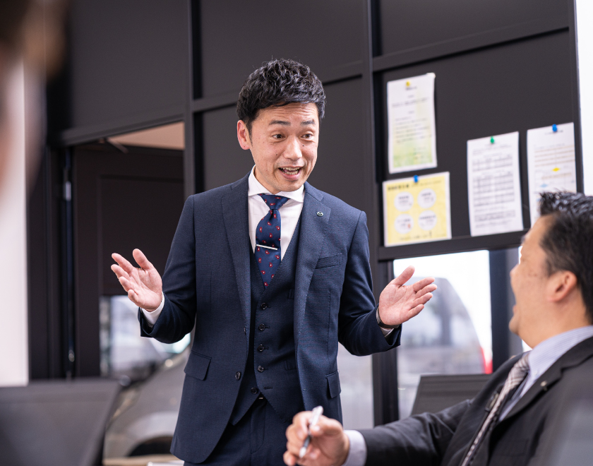 営業スタッフとして働いていた頃から、こうだったらいいのにという仕事の進め方への意見は持ち続けていて、上司にもよく相談していた方だと思います。西九州マツダはそういった意見を発言しやすく、良いアイデアはすぐに取り入れる企業です。自分がマネジメントする側になっても、同じように声をあげてほしいというスタンスですし、それはマネージャー以下のスタッフも例外ではありません。仕事の中で、素直に感じたことを提案する気持ちを尊重します。