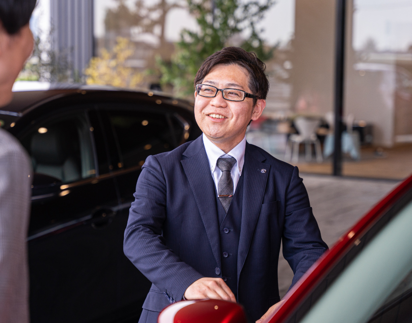 これまでは一人の営業スタッフとしてキャリアを重ねてきましたが、今後は店舗全体の営業スタッフをマネジメントする立場として、もっといろんな部署の仕事を学んでいきたいです。そうする中で、自分自身がもう一段階成長できると思いますし、将来的には店長となって会社に貢献したいと考えています。そしてマツダ車を選んだお客さまのこれからの人生がより豊かになるよう、精一杯努力していきます。
