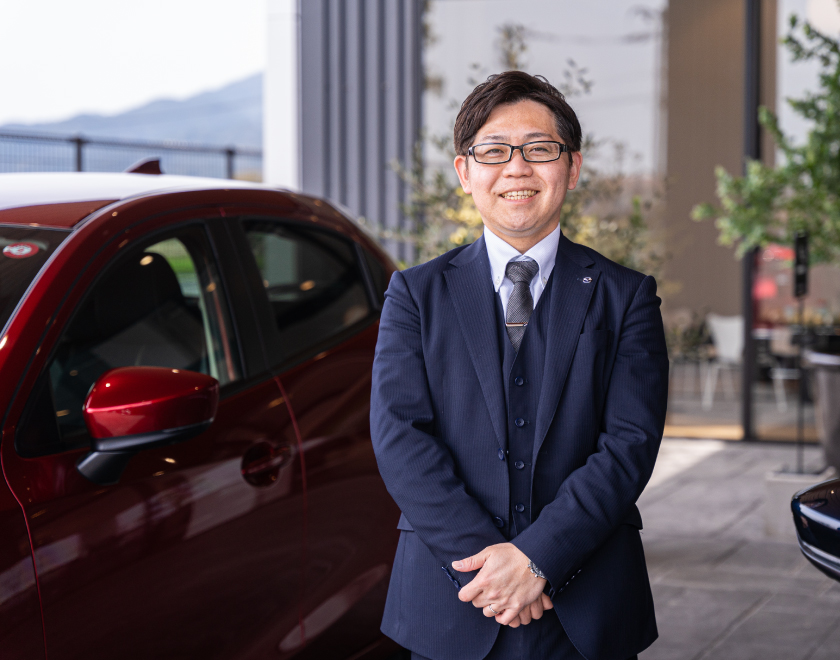 昨年からは武雄店のセールスマネージャーを務めています。自ら接客や販売を行いつつ、店舗の営業スタッフ全体をマネジメントする立場となりますが、仕事に対する意識は大きく変わりました。以前はとにかく自分の売り上げを追求していましたが、今はいかに店舗、そして西九州マツダとして売り上げを高めていくのか、広い視野で考えています。そして何事も指示して終わりではなく、その目的とその効果をきちんと共有することが重要だと考えています。