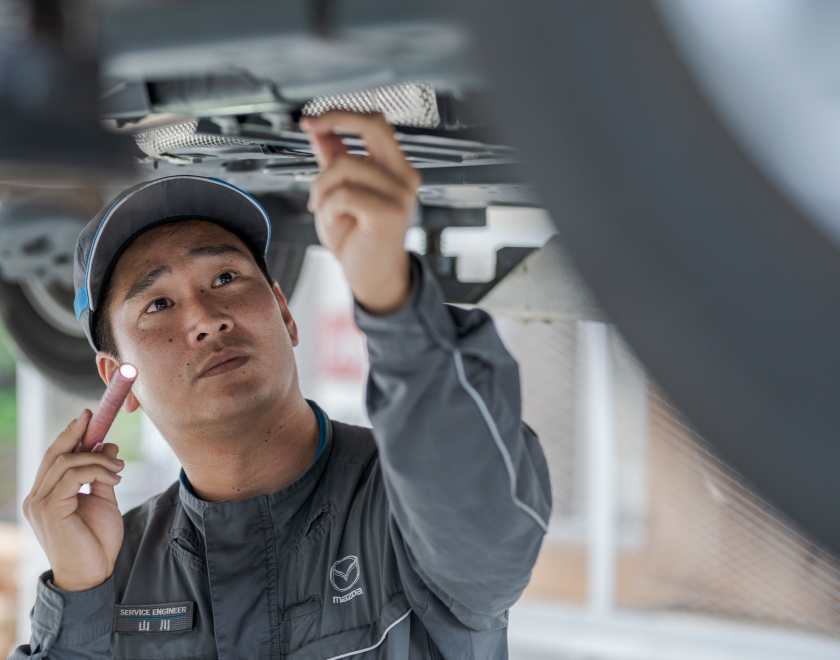 車の値段は安くはありませんし、お客さまにとって大きな買い物です。ですから取り扱いには細心の注意を払いながら作業をしていますし、部品の閉め忘れなどは絶対にないよう入念に確認しています。車の整備を任せていただいているというのは、お客さまの命を自分たちに預けてくださっているということ。そんな認識でいつも仕事と向き合っています。これからもその信頼に応え続けられるように、さらに技術を磨いていきます。